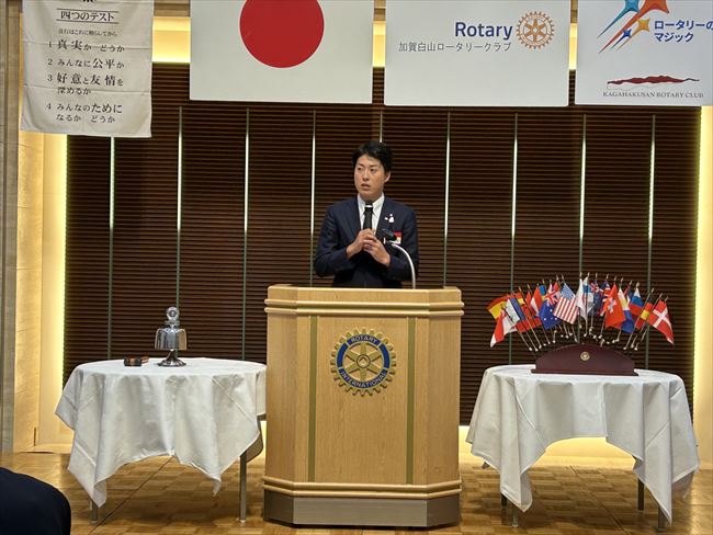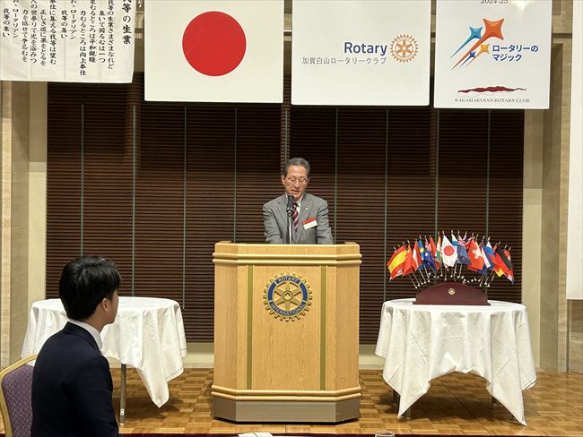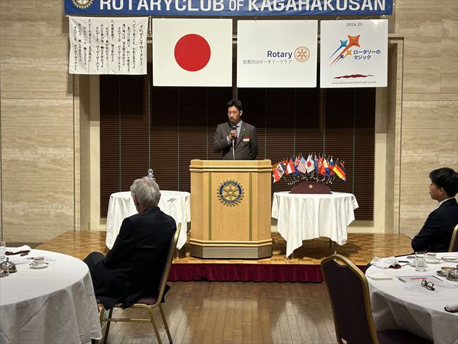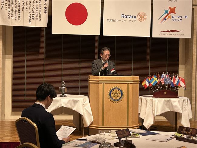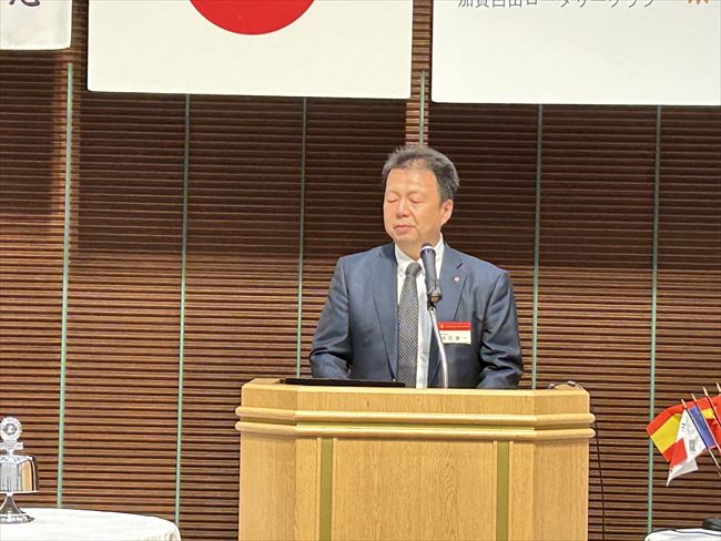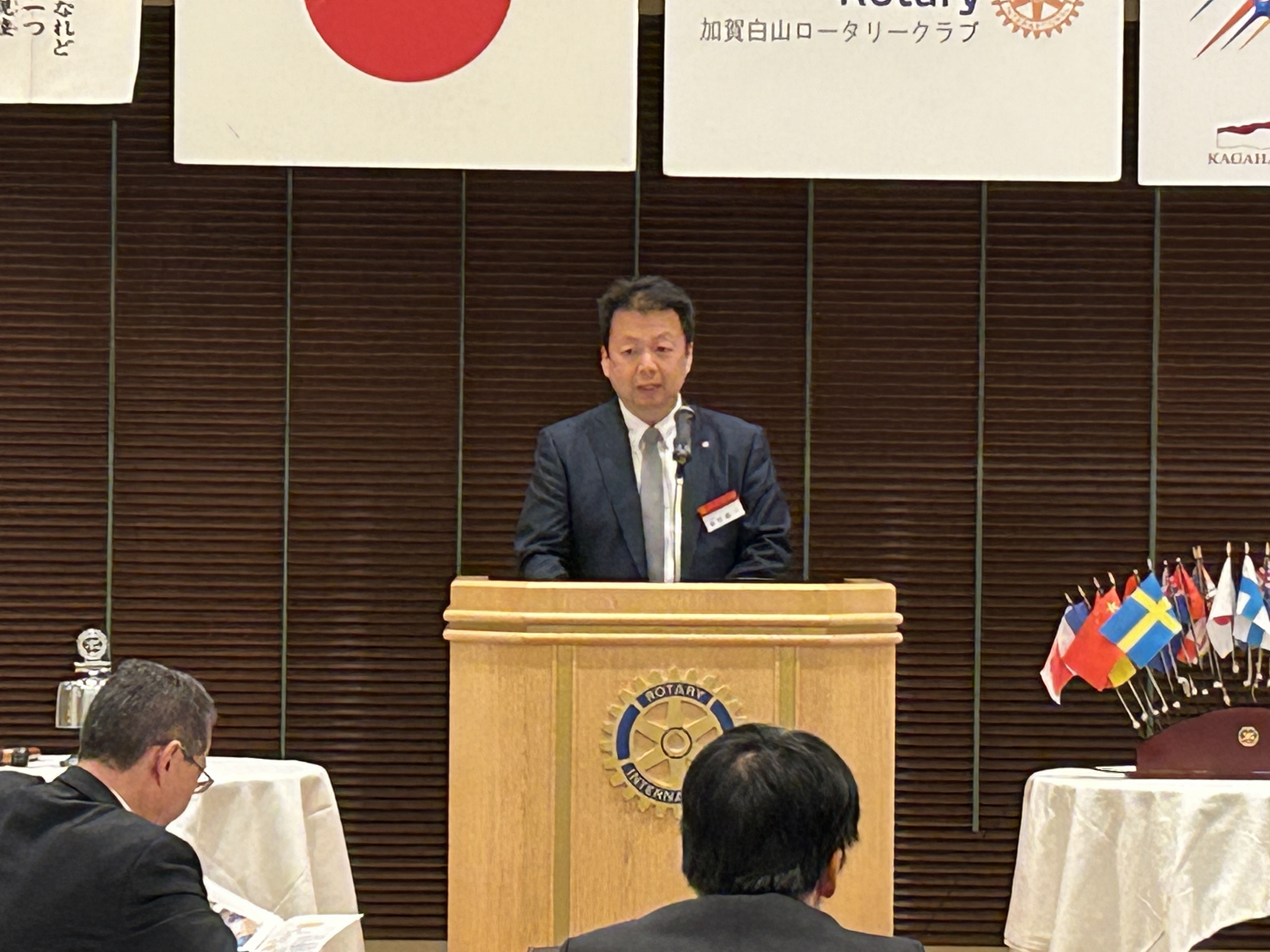 国際ロータリー第2610地区石川第2グループガバナー補佐 菅本清二様をお迎えして卓話をいただきました。お忙しい中、ありがとうございました。