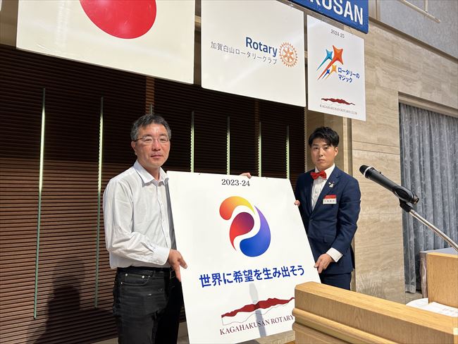 例年通り、前年度テーマ看板を贈呈を行いました。