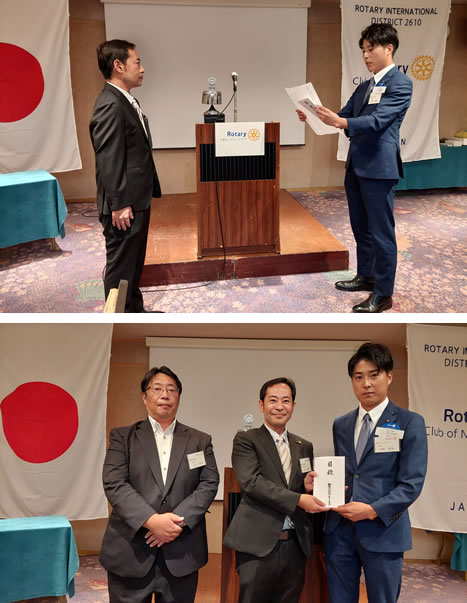 また、カウンセラーの中村 正司様(河北南ロータリークラブ)、国際ロータリー第2610地区ロータリー米山記念奨学会委員長 松崎 秀規様(金沢ロータリークラブ)、国際ロータリー第2610地区ロータリー米山記念奨学会副委員長村谷 哲也様(河北南ロータリークラブ)もご出席されました。