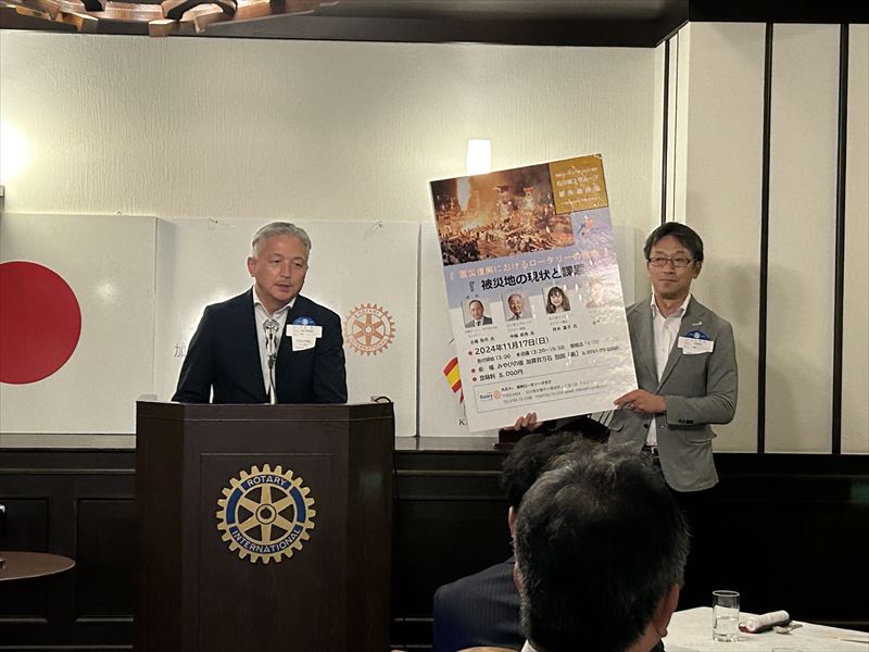 また、和倉では輪島ロータリークラブ 春木謙一様・七尾ロータリークラブ 津田晃様より、能登震災の発災当時から現在までの経緯や今後の問題点等をお話しいただきました。