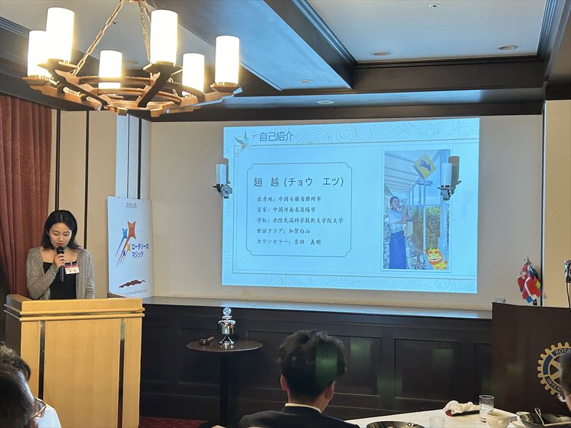 今年度当クラブのお世話米谷奨学生 超 越さんの卓話でした。『伝統の復興』と題したお話でした。