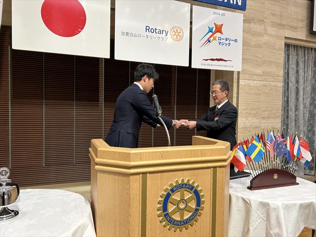 贈呈式は、七尾ロータリークラブ様の例会にて行いました。少しでもお役に立てましたら幸いでございます。