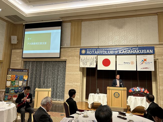 プログラムは宮本一夫君より『ダイ アカ族豪雨支援』と題し、タイでの支援作業やアカ族の状況、現地の高校でのボランティア活動の報告をいただきました。