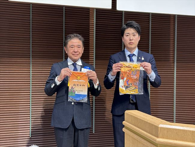 また、11月に開催の国際ロータリー第2610地区石川第2グループIMのPRに、IM実行委員長 吉田貴様・IM実行委員 山本将也様のお2人が主催クラブの加賀ロータリークラブ様より御来訪されました。