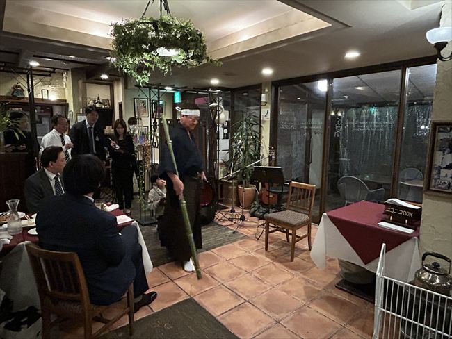 会場の雰囲気もかわり、籠谷会員の弾き語りや宮本会員の黒田節披露もあり大変もりあがりました。