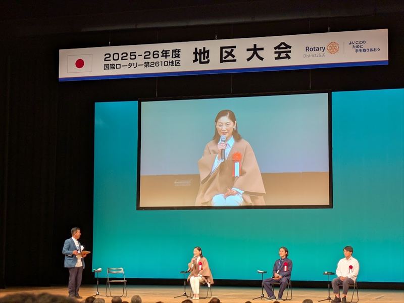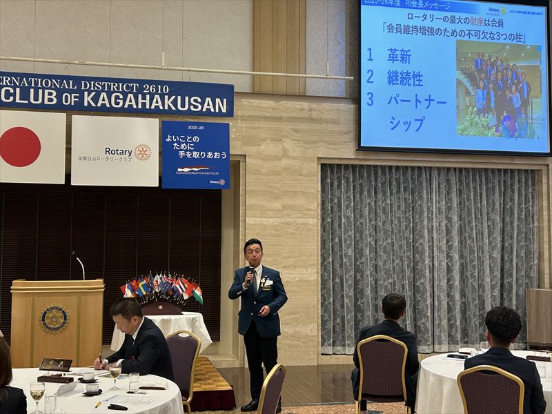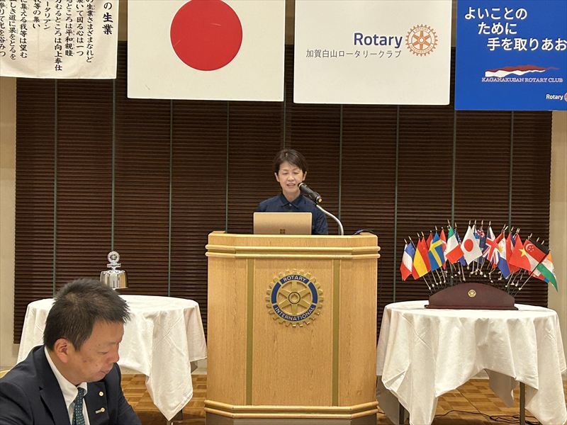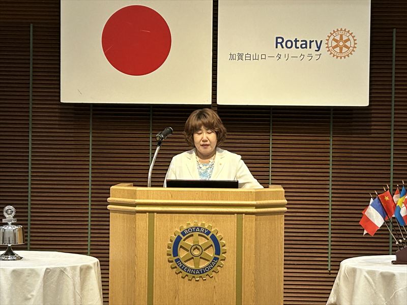 国際ロータリー第2610地区石川第2グループ 高見 恵子ガバナー補佐(小松シティRC)の訪問でした。ガバナー補佐卓話では『RI2025-2026 DEI 誰もが笑顔でいごこちの良いクラブ』をテーマにお話しいただきました。