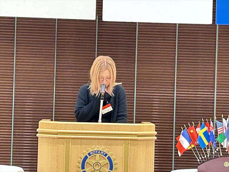 ロータリーソングでは、『4つのテスト』の手話解説動画を見ながら行いました。